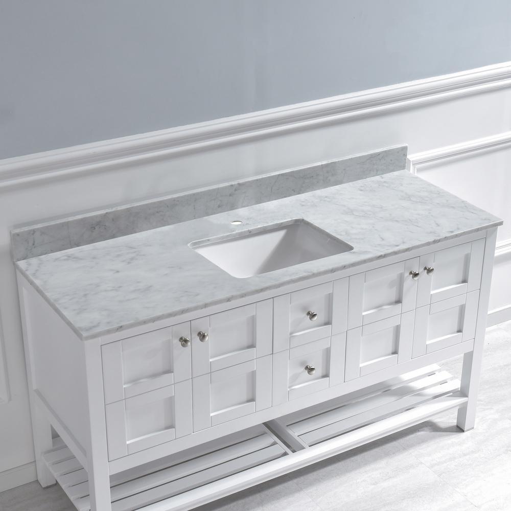 Harlow 61 in. W x 22 in. D Single Basin Carrara Marble Vanity Top in Carrara White with White Vitreous China Basin