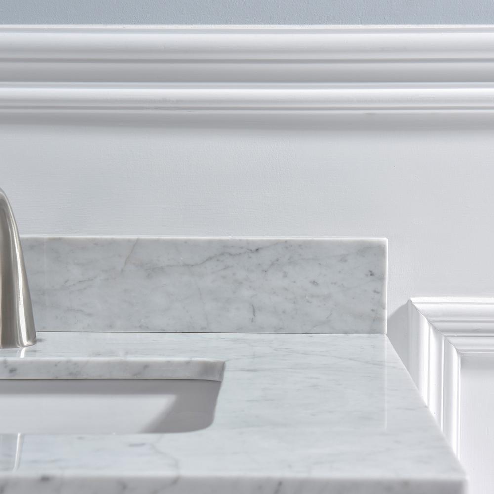 Warmly elegant and stylish Carrara marble vanity top complement most bathroom designs and coordinate with both light and dark cabinetry