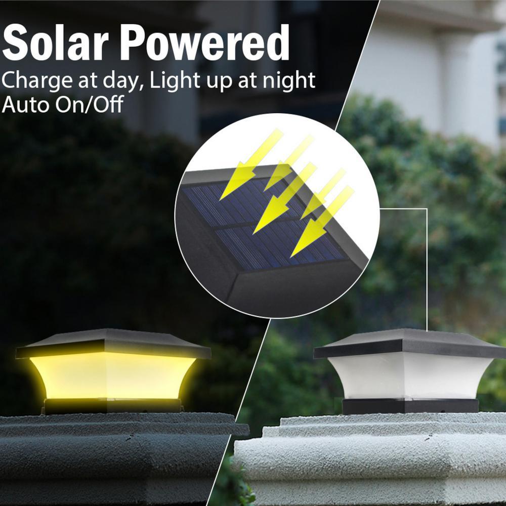 Super Bright 100 Lumens Solar Post Cap can light up your deck or fence without worrying about an outlet or a plug. Specifically designed for 4 in. wooden posts, installation is easy with included screws. Made of high quality ABS material the exterior is strong and weatherproof. Featuring 6 high quality LEDs that can shine bright for up to 9-hours each night on 8-hours of direct sunlight charge Time. 3000K Warm White is perfect for warm outdoor atmosphere. High quality Poly-silicon solar panel paired with high capacity 3.7-Volt 2000mAh 18650 Lithium battery make up this high quality product that will lasts for many seasons to come.