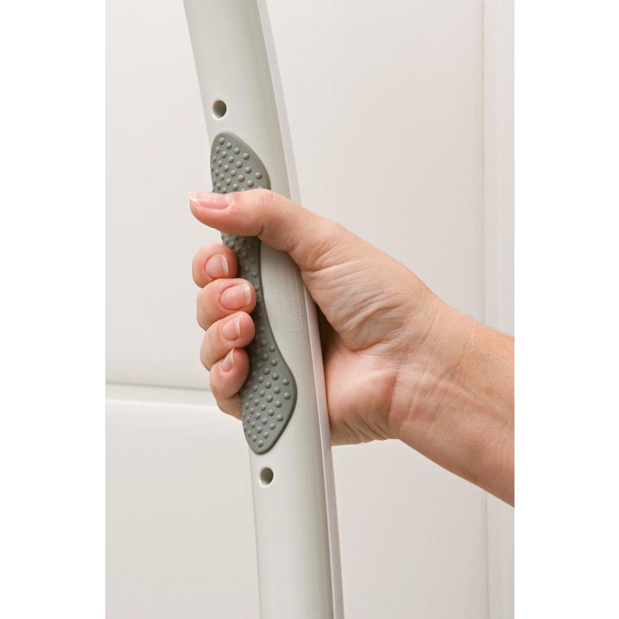 Balance assist bar for shower or tub Suction cup design is easy to attach, remove or relocate Attaches to all smooth non-porous surfaces Allows the user to enter a wet and slippery tub safely and with confidence This balance assist grab bar is meant to be used on flat, non-porous surfaces and not on painted surfaces such as drywall For placement on tile, tile squares must be at least 4 in. x 4 in. in diameter so that suction cups are not placed over grout lines as this will allow air to move under the suction cup thereby releasing its hold Balance bar is to be used only to assist and help balance a persons body, not to stand full body weight, use with caution and always test the suction cups prior to each use To clean, simply wipe bar itself along with the underside of the suction cups with a wet warm cloth regularly Measures 16 inches in length