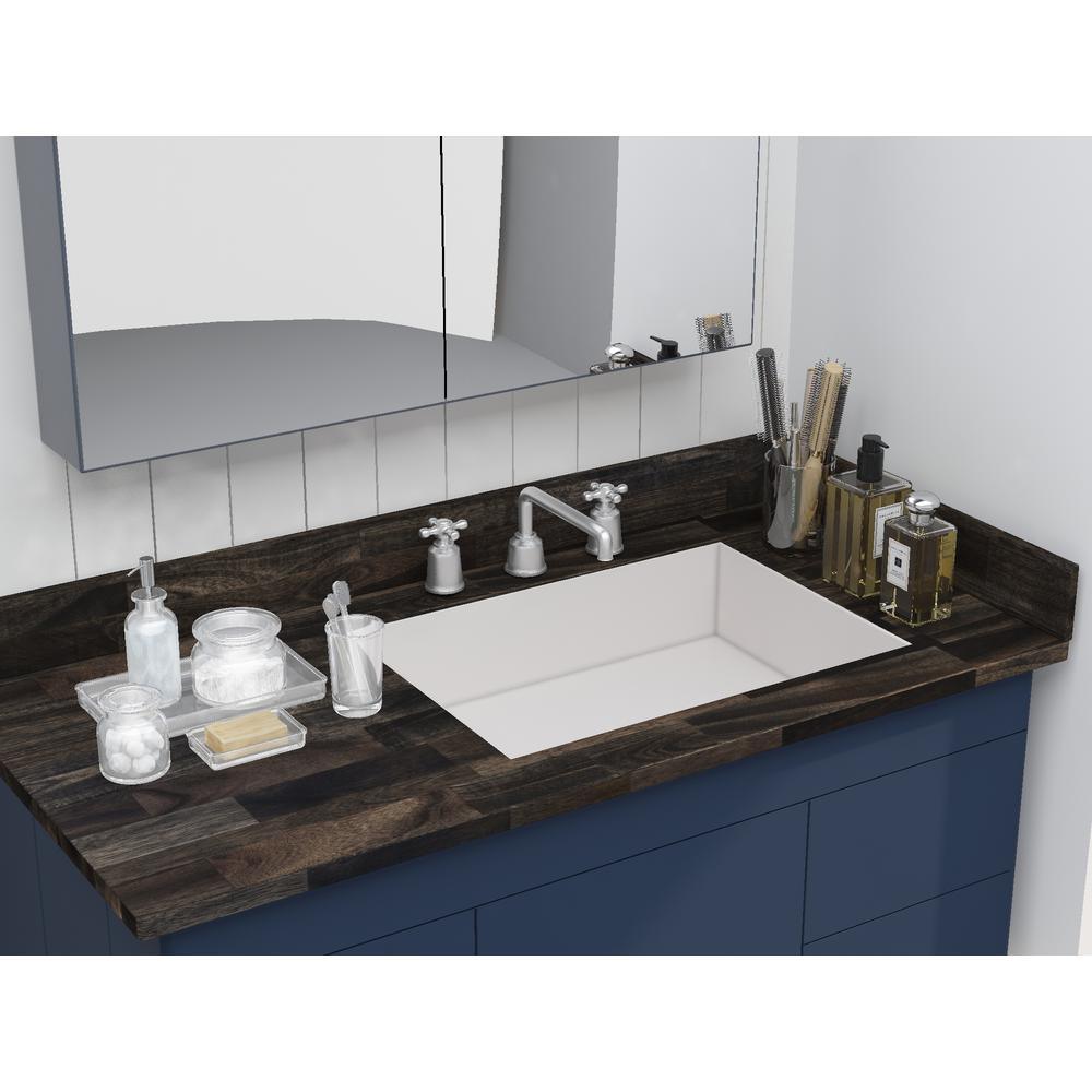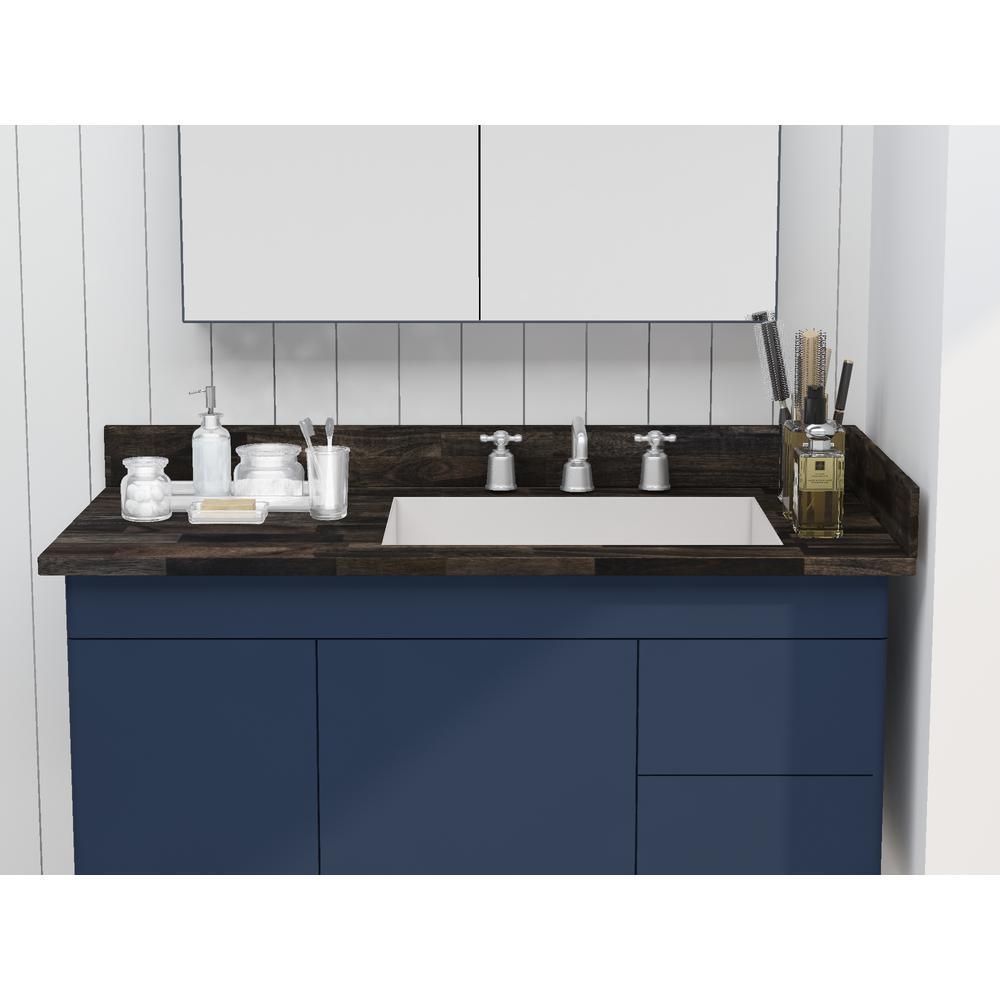 natural water resistant properties similar to teak which makes it suitable for indoor and outdoor use. The end-grain butcher block construction is very durable is recommended for food preparation areas as. Interbuild's acacia countertops are Forestry Stewardship Council certified (FSC) which means the wood is harvested from sustainable, renewal plantations. It is important to note that acacia should be conditioned with at least two coats of a clear natural wood oil sealant prior to installation. Acacia can be cut, drilled and routed easily with standard wood working tools so that it is possible to fit them to any vanity countertop and backsplash configuration.
