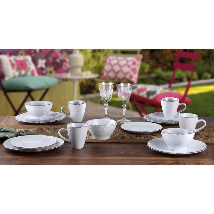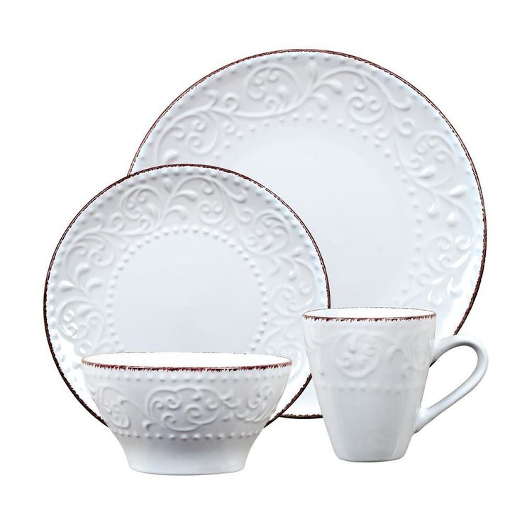 16-Piece Lorren Home Stoneware Scroll Dinnerware Set-White