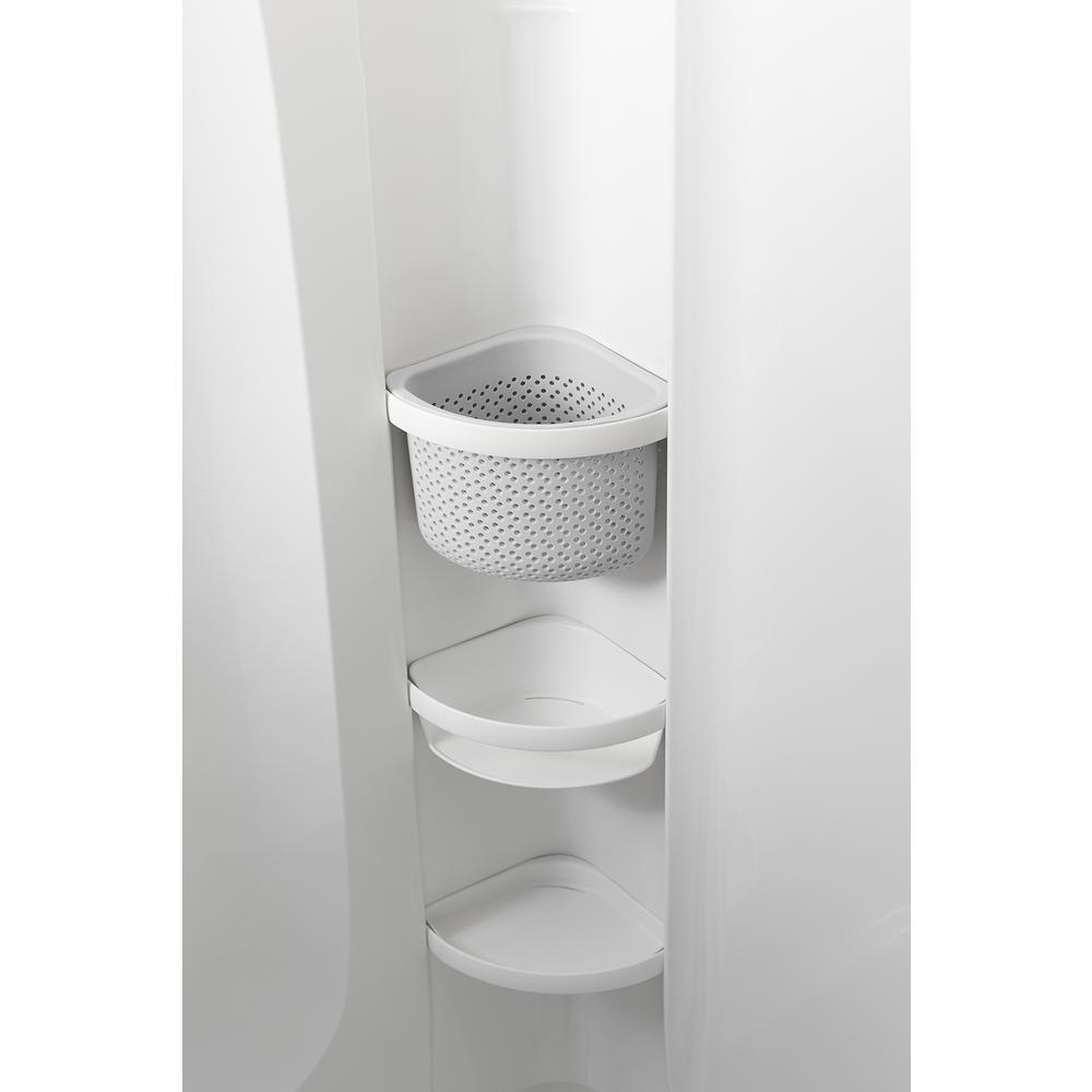 Components include: shower base, shower back wall, shower end wall set and 12-piece accessory kit