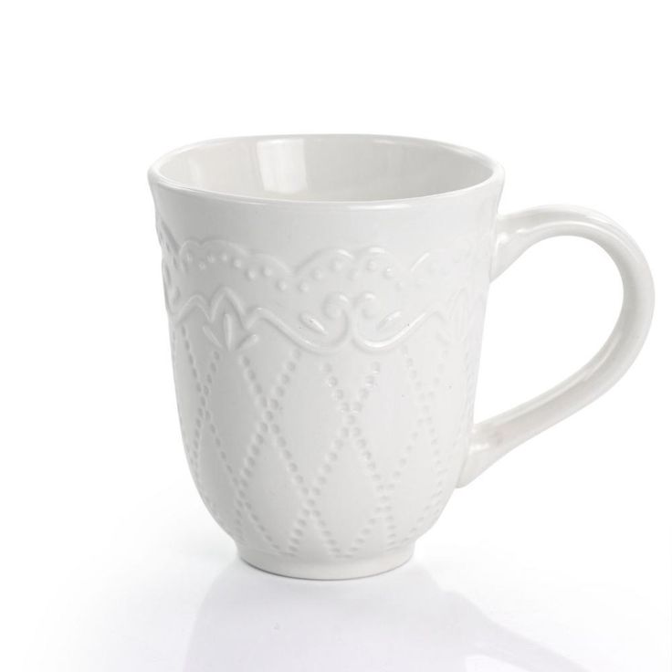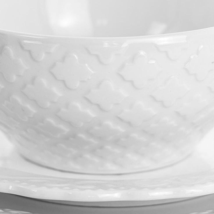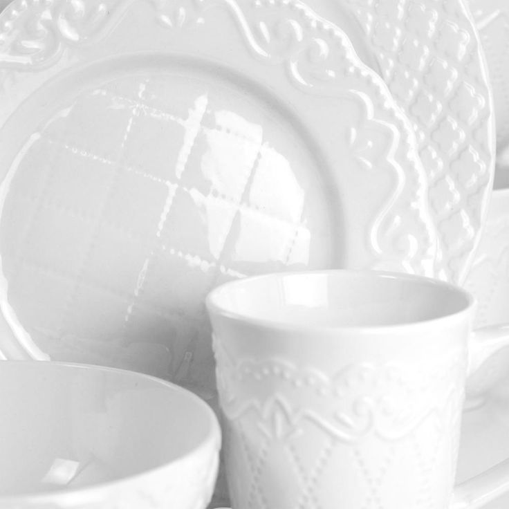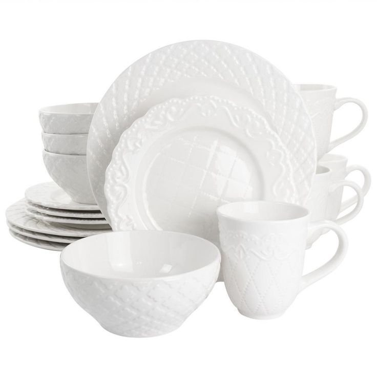 Quilted Eyelet 16 Piece Round Fine Ceramic Dinnerware Set in White
