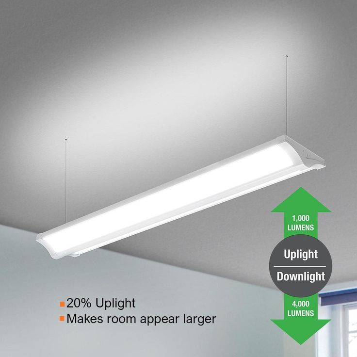 Designed to provide efficient lighting in larger spaces, this Commercial Electric 4 ft. 4000 Lumens Indirect Integrated LED White Wraparound Light features both downlight and uplight capabilities. The main direct lighting emits 4000 Lumens and uses only 38-Watts of electricity, while the indirect light beams upward with 1000 Lumens and 12-Watts of electricity. The total output of 5000 Lumens and 50-Watts is perfect for conference rooms, classrooms, lobbies, and other spacious areas. With a color temperature of 4000K and 0-10V dimmable option, this light is a superior replacement for outdated fluorescent tubes, providing crystal clear and energy-efficient lighting for up to 50,000 hours of continuous use. Choose from three mounting options – surface, row, or suspended – with most hardware included. Enjoy a 5-year warranty and maintenance-free operation with no bulbs to replace.