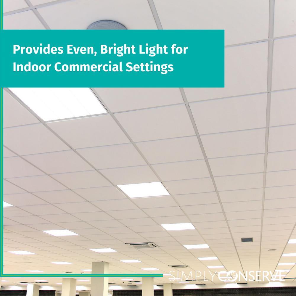 The Simply Conserve DLC certified LED flat panels are designed for recessed, surface, or suspended ceiling grid installation, making them an ideal solution for replacing inefficient traditional fluorescent fixtures. They produce an even, bright light suitable for commercial settings including office buildings, schools, hospitals and more. Their minimalist design allows them to integrate seamlessly, offering high-quality, reliable lighting. These flat panels include a switch to select the color temperature and lumens making this an ideal solution for multiple applications.