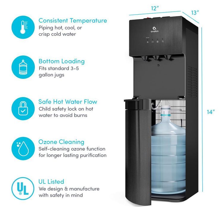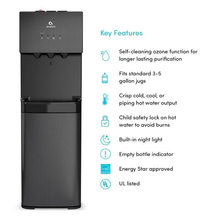 Self-Cleaning Water Cooler Water Dispenser - 3 Temperature Settings Black Stainless Steel