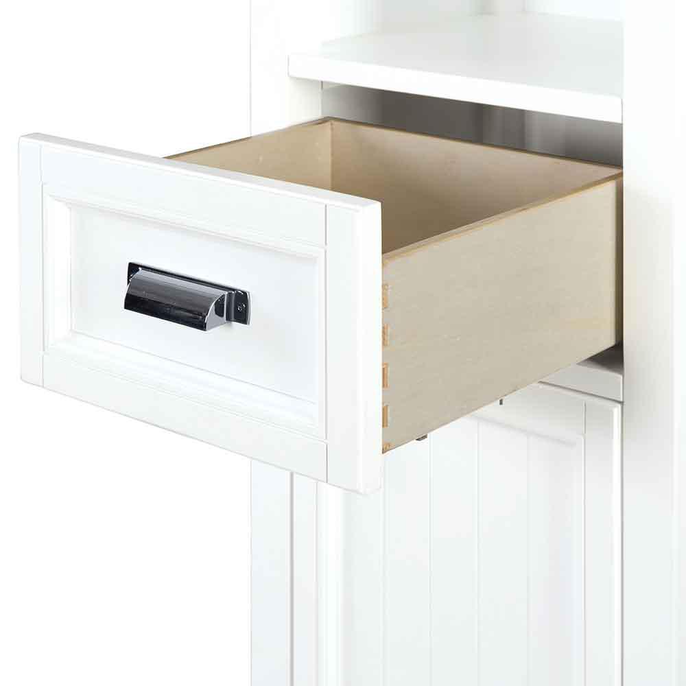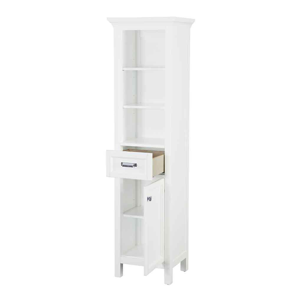 Bring the simplicity and warmth of farmhouse style into your bathroom with the Brantley Collection. The 19 in. x 70 in. floor cabinet features 1 soft close doors, 1 interior adjustable shelf, and 1 full extension slow close drawer to maximize your storage space. Top open adjustable shelving provides ample storage for items you need easy access to. With style elements such as a White finish and a beaded inlay on the doors, the Brantley Collection will help you bring the cozy farmhouse feel of the rest of your home right into the bathroom.