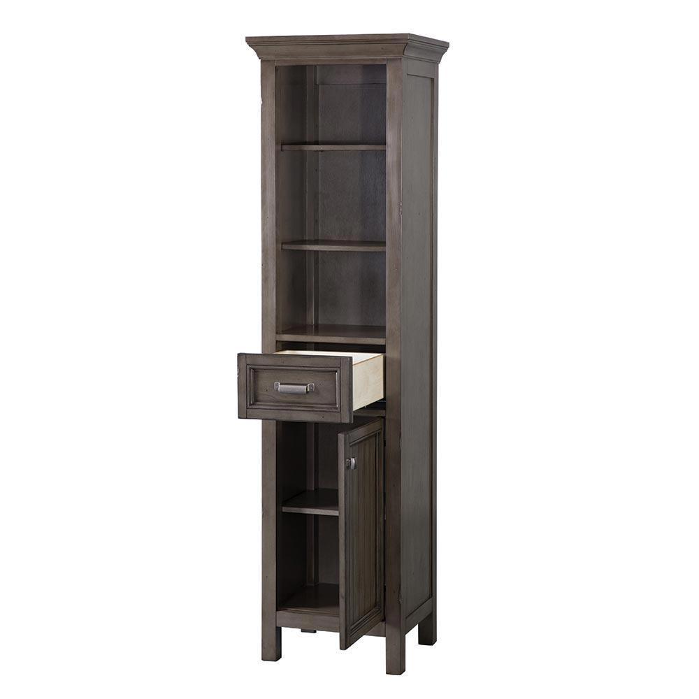 Bring the simplicity and warmth of farmhouse style into your bathroom with the Brantley Collection. The 19 in. x 70 in. floor cabinet features 1 soft close doors, 1 interior adjustable shelf, and 1 full extension slow close drawer to maximize your storage space. Top open adjustable shelving provides ample storage for items you need easy access to. With style elements such as a Distressed Grey finish and a beaded inlay on the doors, the Brantley Collection will help you bring the cozy farmhouse feel of the rest of your home right into the bathroom.