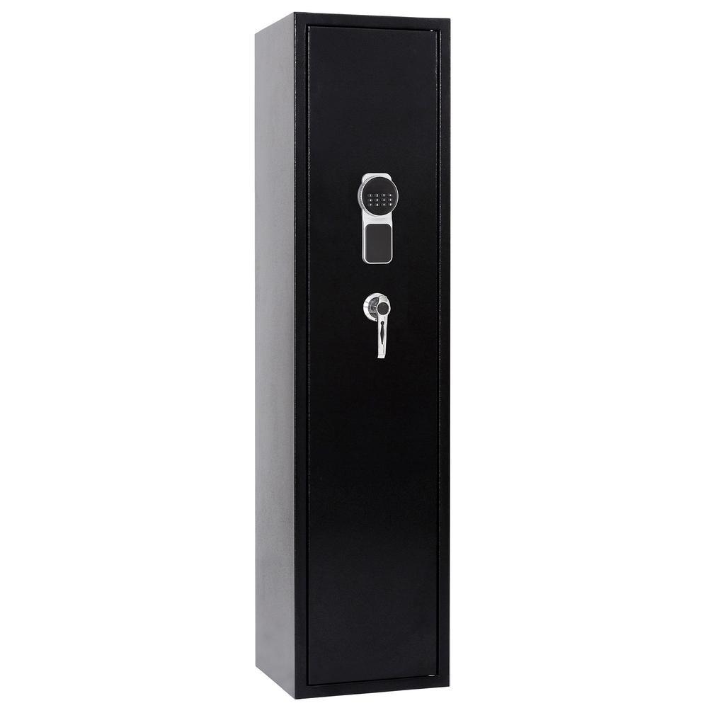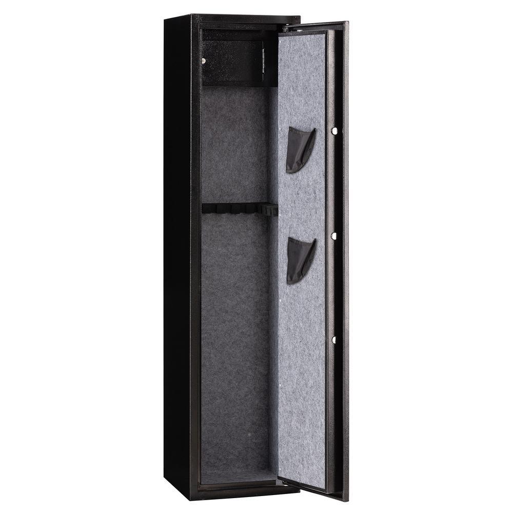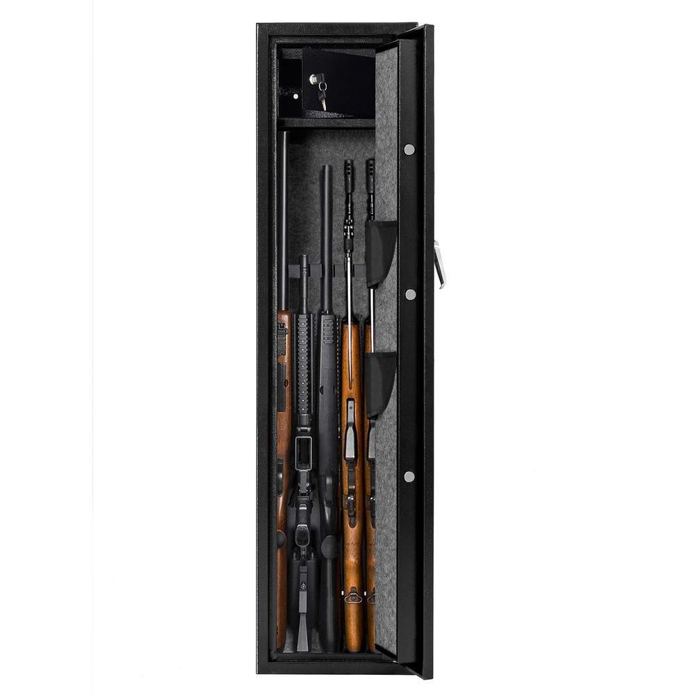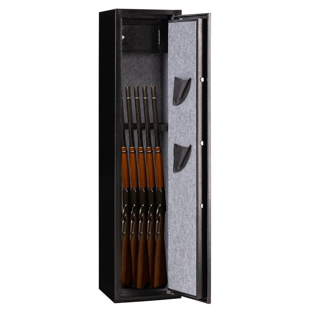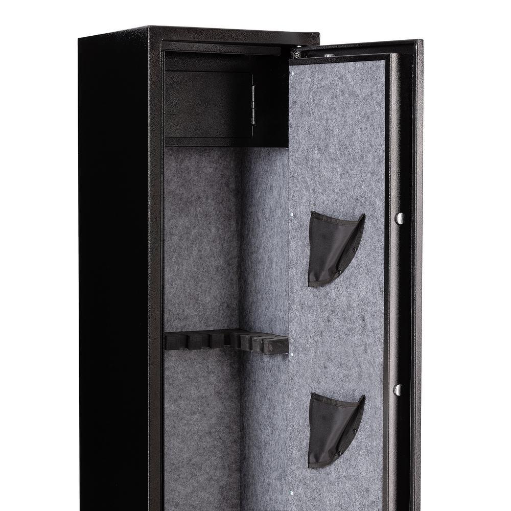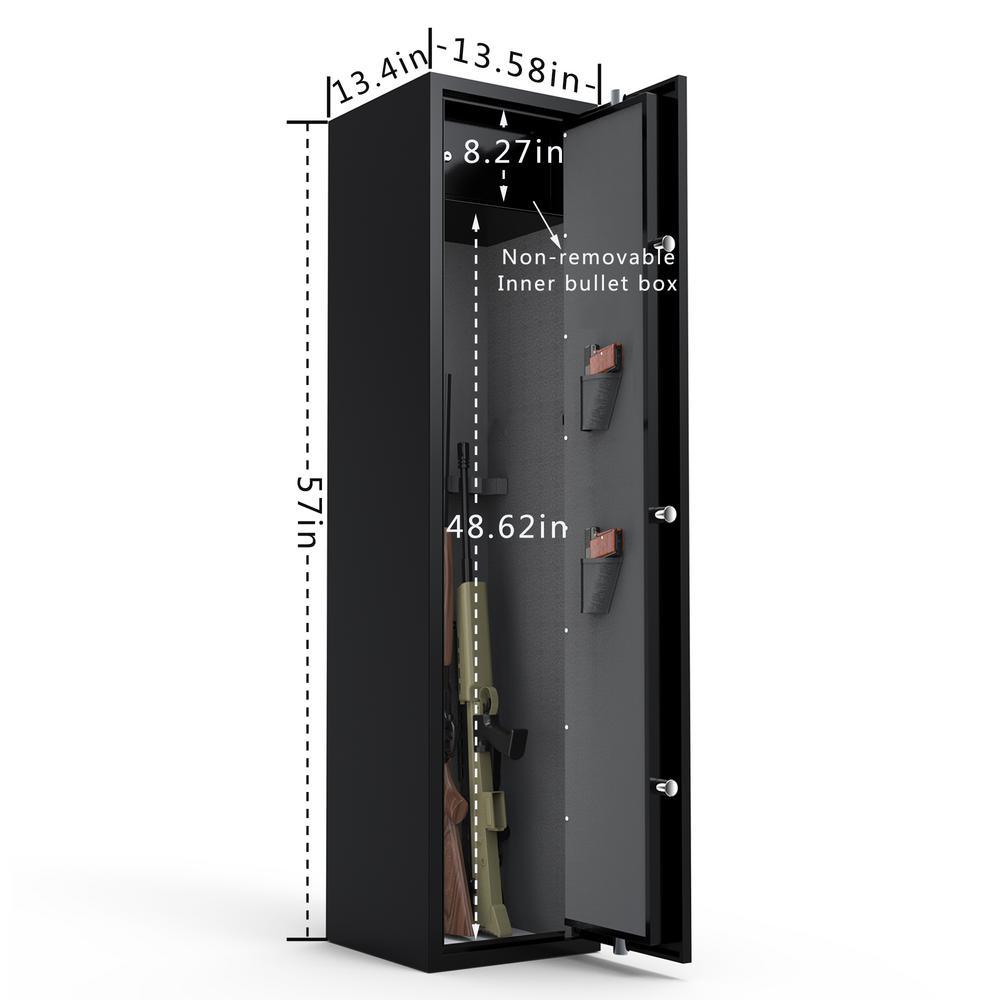 57 in. H Large Rifle Safe with Electronic and Key for Rifle Shotgun for Home, 5-Gun Cabinet with Handgun Lockbox, Black