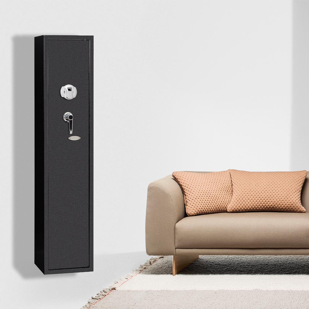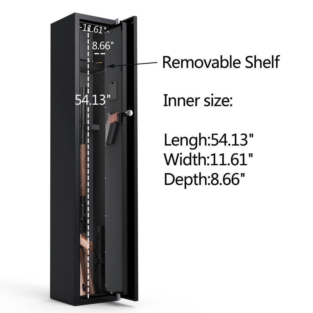 Easy installation, big enough to hold 4 rifles and 1 hangun pre-punched mounting holes in the back and at the bottom of the gun security cabinet