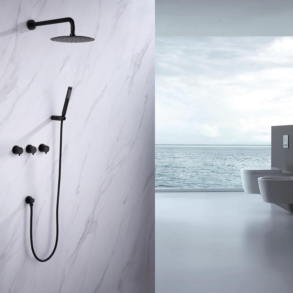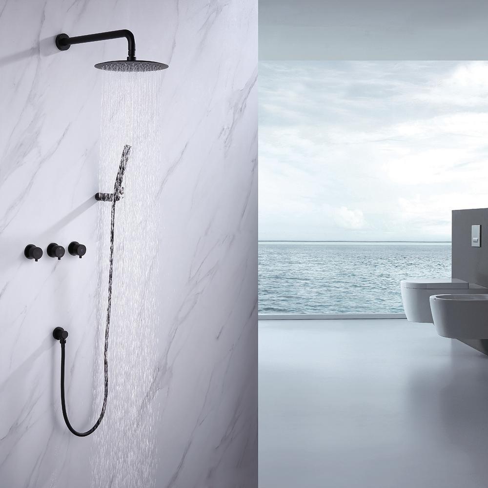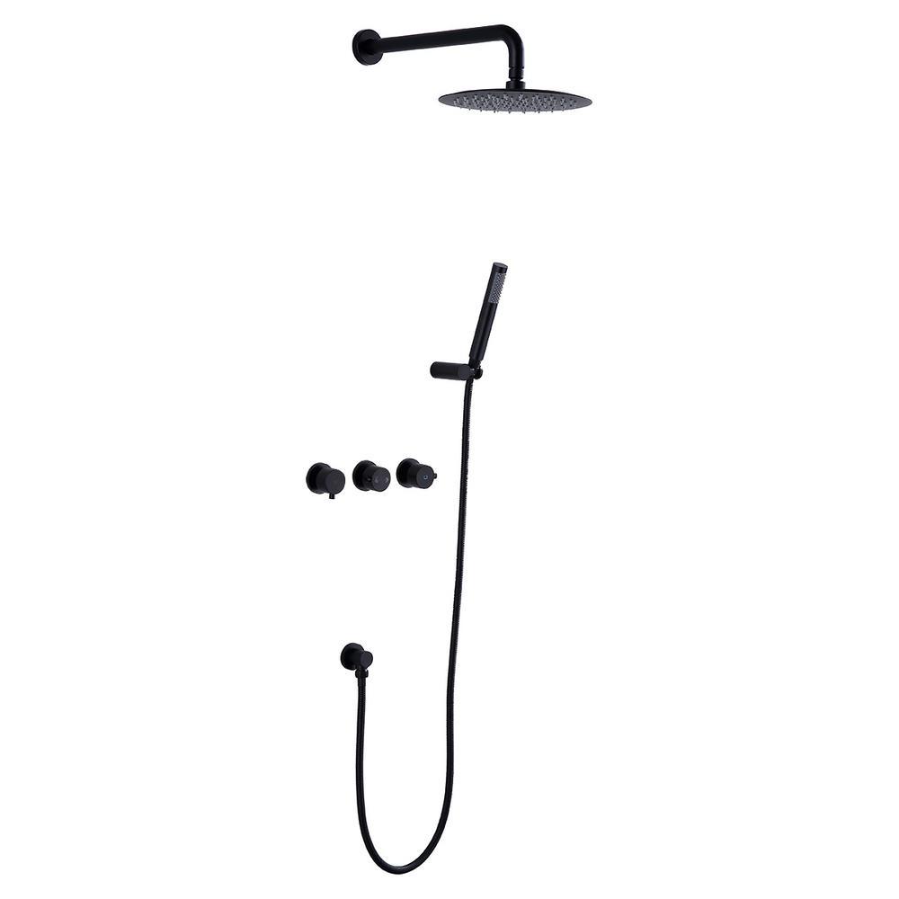 1-Spray Patterns with 1.5 GPM 10 in. Wall Mount Dual Shower Heads with Body Spray High Pressure in Matte Black