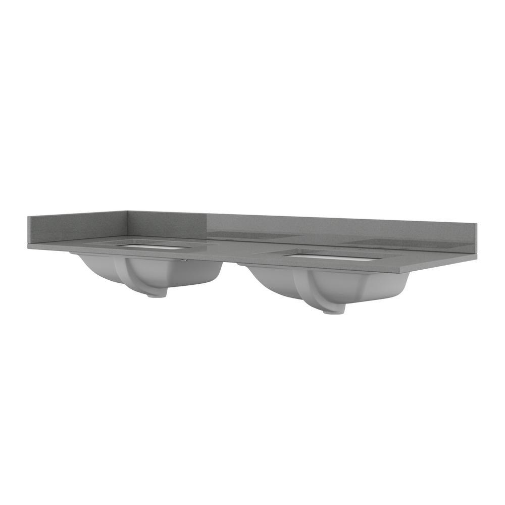 61 in. W x 22 in. D Quartz Double Basin Vanity Top in Galaxy Grey with White Basins