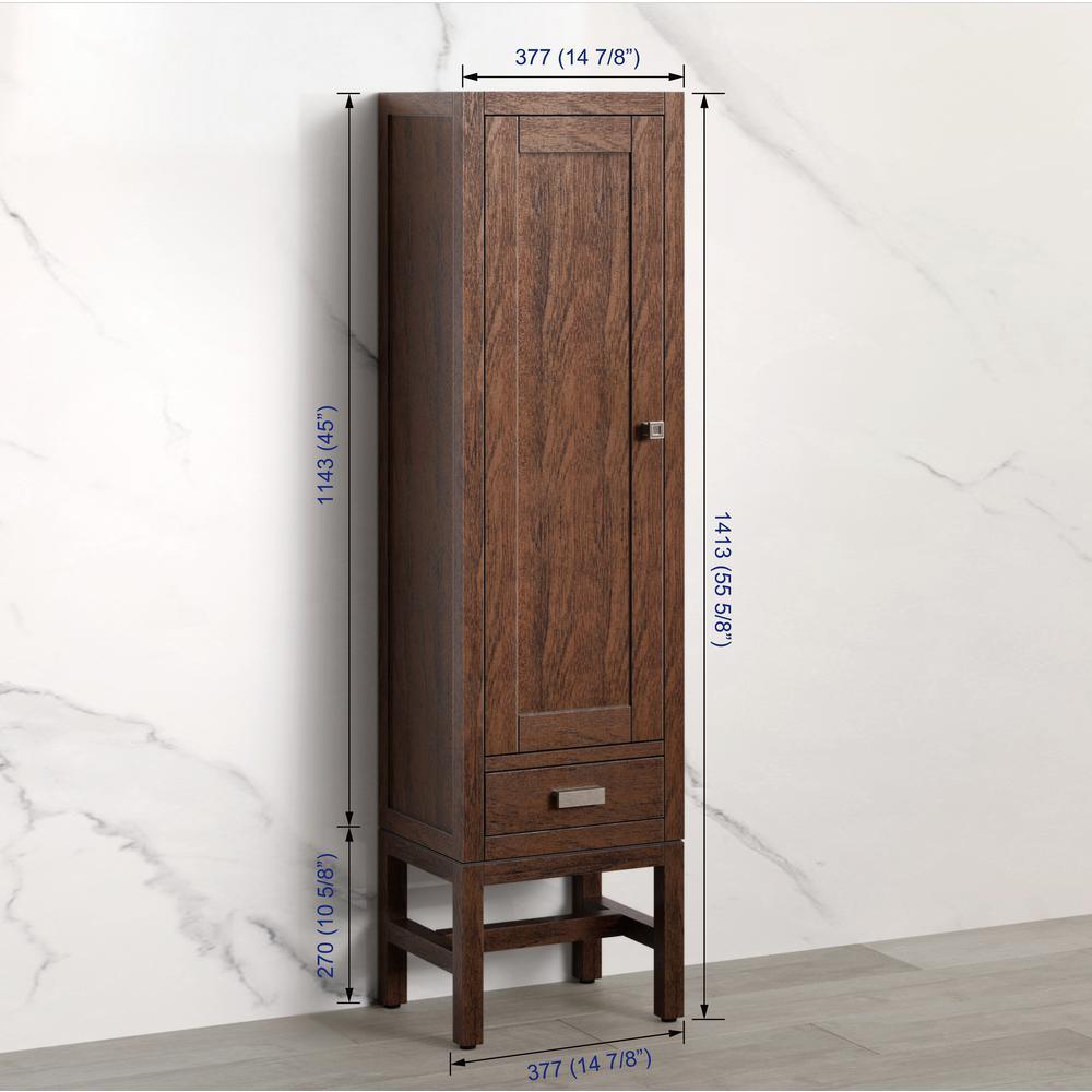 • Addison linen tower by James Martin Vanities measures in.14.88 in. W x 11.88 in. D x 55.63 in. H, providing ample storage for your bathroom toiletries