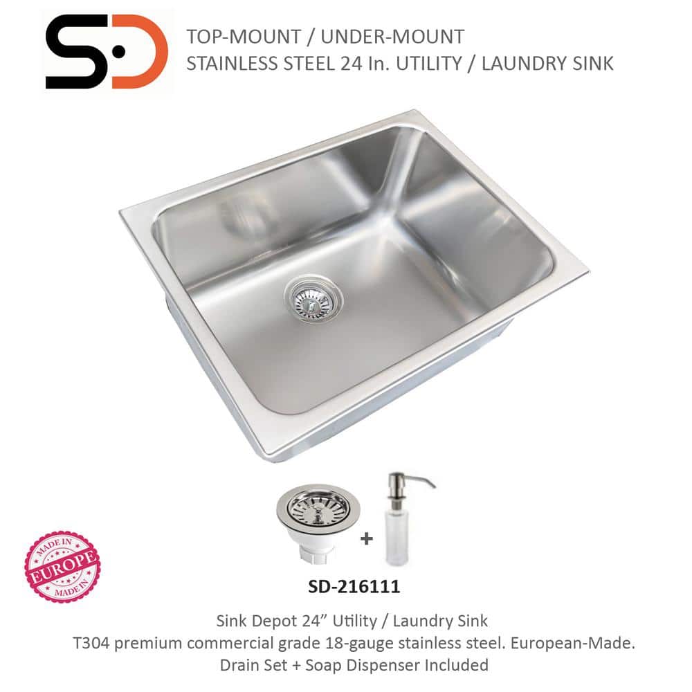 SINK DEPOT 24 in. x 18 in. Stainless Steel Utility Sink - Drop-In/Undermount