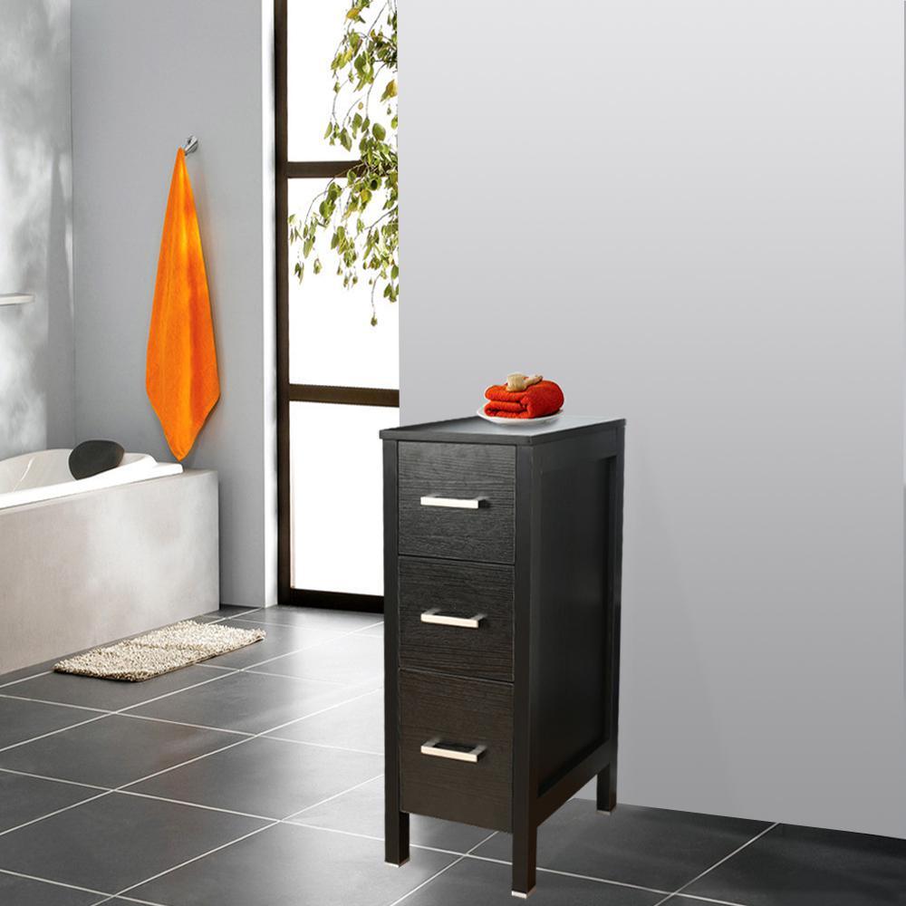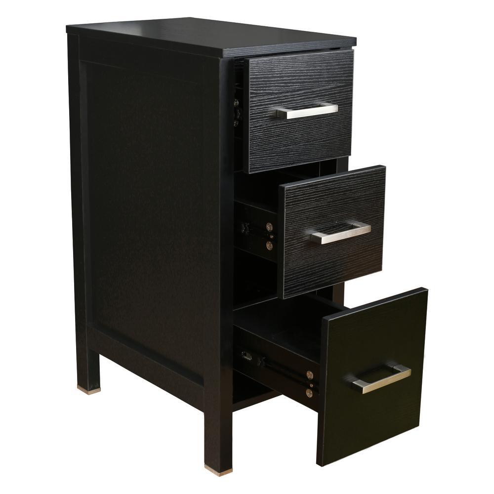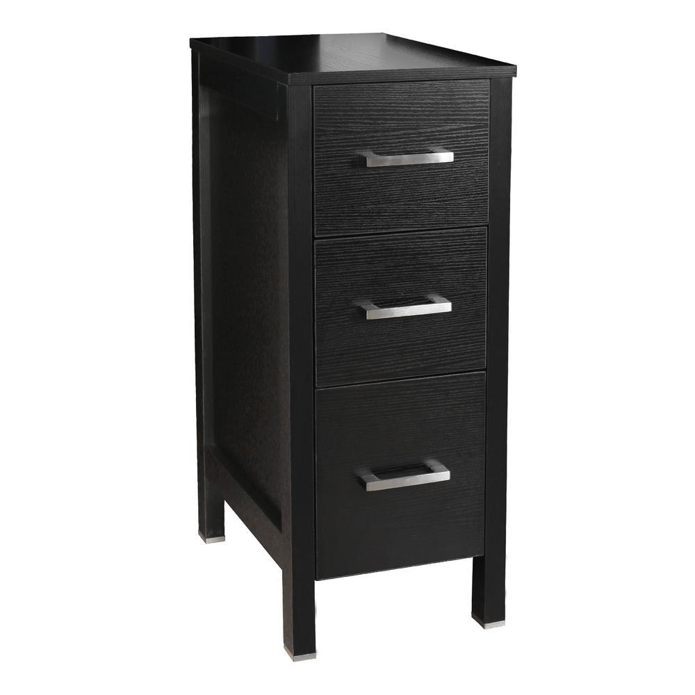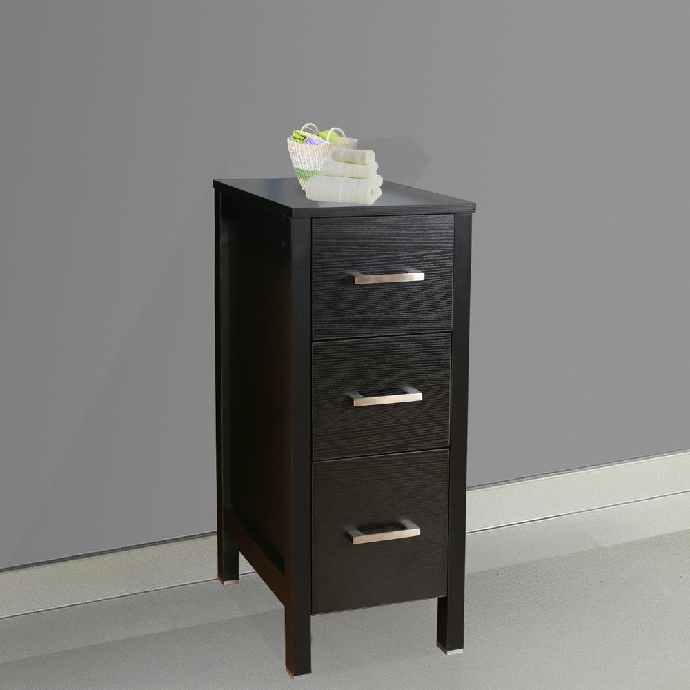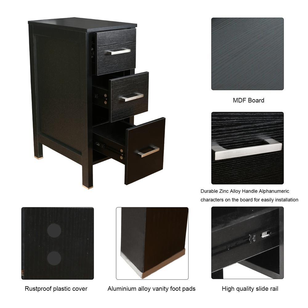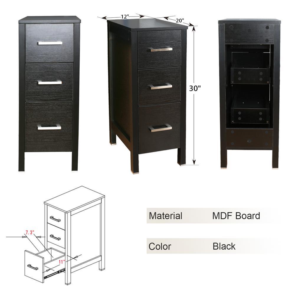 Dimension: 12 in. L x 20 in. W x 30 in. H black side bathroom cabinet; 7.3 in. L x 11 in. deep drawer