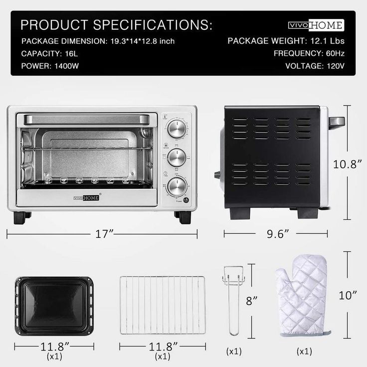1400-Watt 6-Slice Stainless Steel Countertop Toaster Oven with Bake Pan, Rack, Drag Hook and Oven Mitten