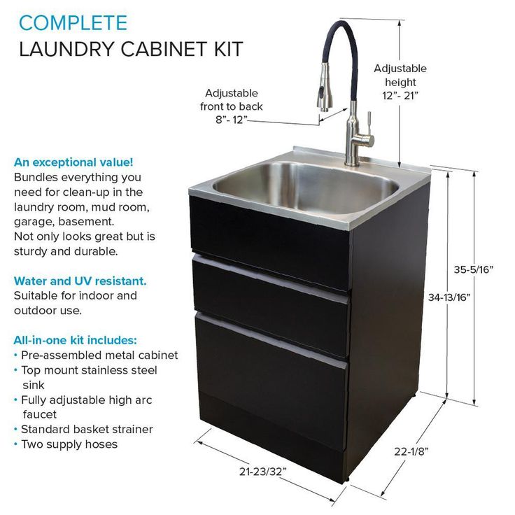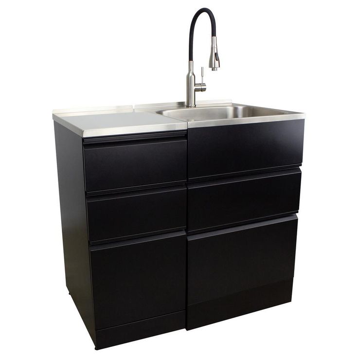 All-in-One 44.8 in. x 22 in. x 35 in. Metal Drop-In Laundry/Utility Sink and Cabinet in Black