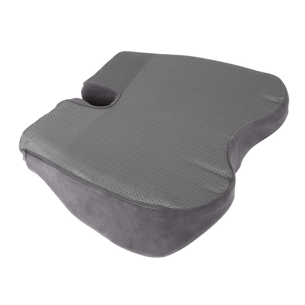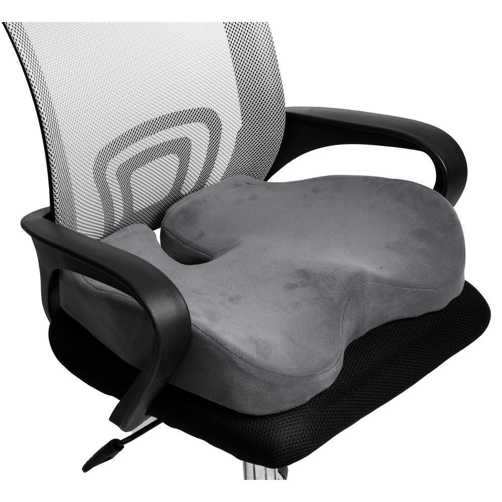 Support your seat using the Mind Reader Orthopedic Cushion. Sitting in the same spot for extended periods of time with inadequate support can lead to a number of aches and pains. Many home office chairs provide minimal seat padding or wear down over time. This results in extensive discomfort, lowers productivity, and can even affect your overall mood and motivation. For individuals with arthritis, back and leg injuries, or other health conditions, and other physical needs requiring extra support, these ergonomic cushions are an absolute necessity. Designed to cradle and conform to the unique shape of your bottom, this soft and dense cushion fits perfectly onto most seats. The interior memory foam filling features a contoured design that molds to your unique body shape, while diffusing tension to help alleviate back and leg pains. Proper distribution of weight throughout the day can help you to feel less sore. The textured fabric at the bottom of the cushion helps to keep you firmly planted in your seat, even if it's made of plastic, vinyl, or leather. The lightweight design makes it ultra-convenient to pack this cushion along with you on road trips, airplane journeys, or even a lengthy train ride. Say so-long to uncomfortable seating when you bring home an orthopedic seat cushion from Mind Reader Products.