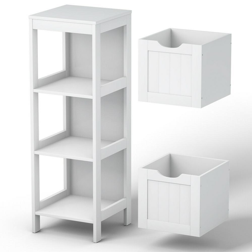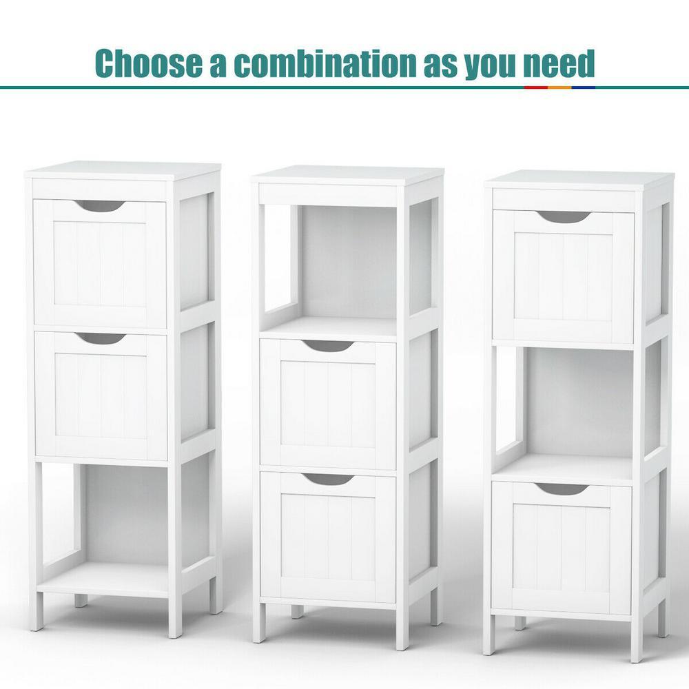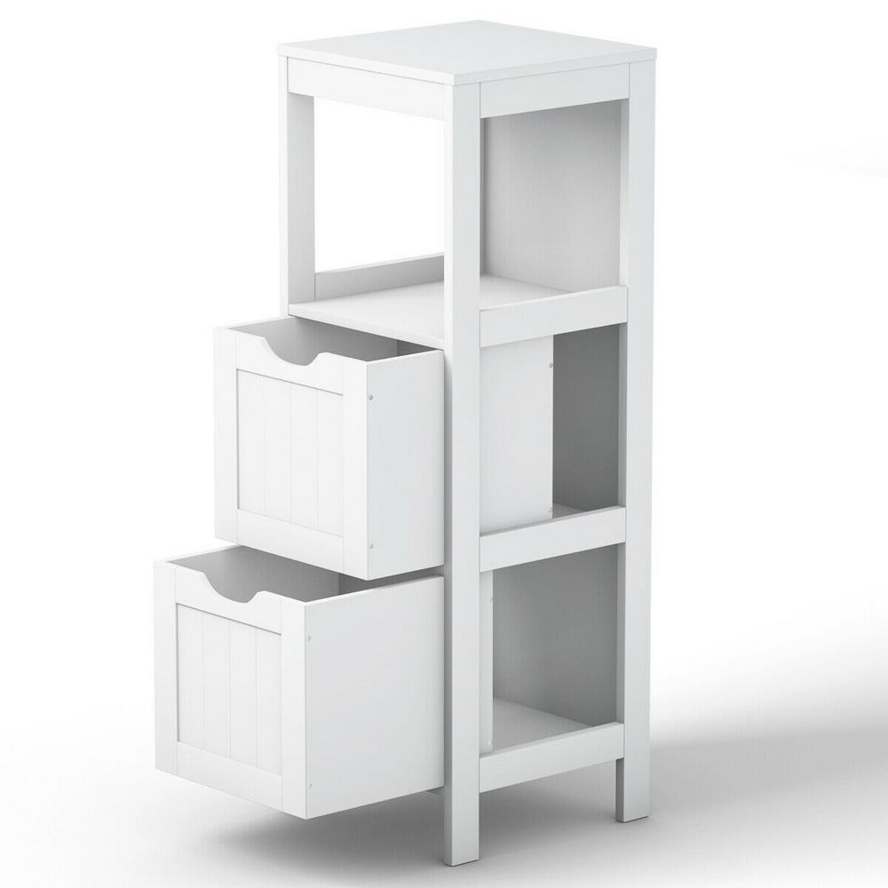This modern white bathroom floor cabinet will offer an elegant and comfortable look to your home decor. This great cabinet provides 2 large drawers and 1 open shelf for plenty of storage space which is space saving for your daily organization. And the well-made wooden frame along with eco-friendly varnish provides strong stability and sturdiness. The healthy finish is waterproof, mildew-resistant and wear-resistant that won't do harm to your body. Moreover, you can use it as bathroom cabinet hall cabinet or nightstand.