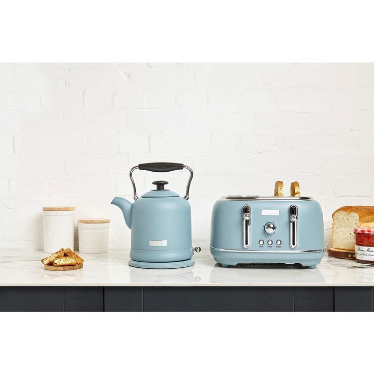 HIGHCLERE 4-Slice, Wide Slot Pool Blue Retro Toaster with Removable Crumb Tray and Adjustable Settings