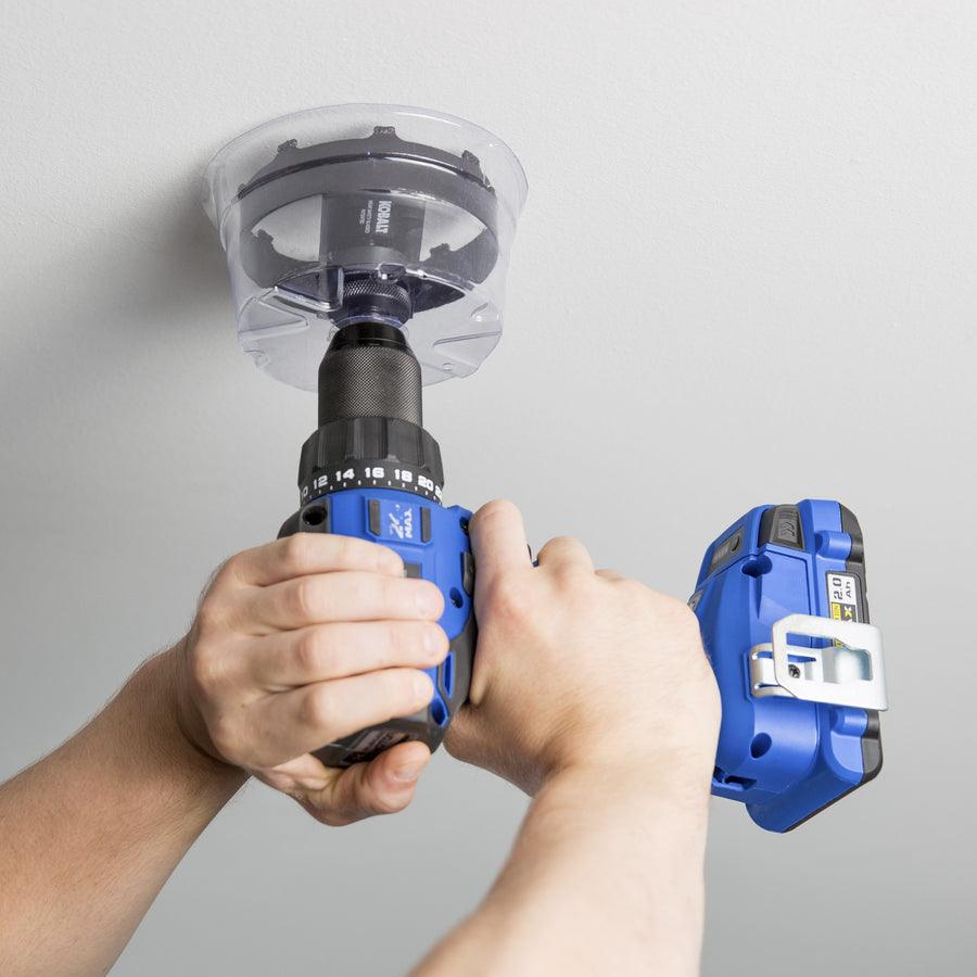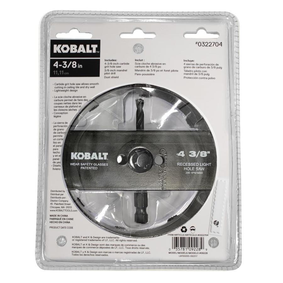 Includes 4-3/8-in hole saw, mandrel pilot drill and dust shield