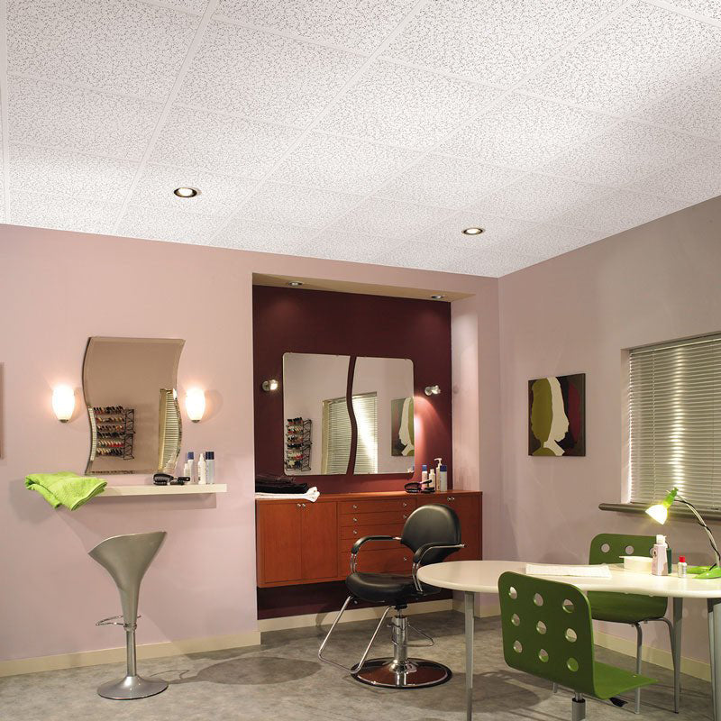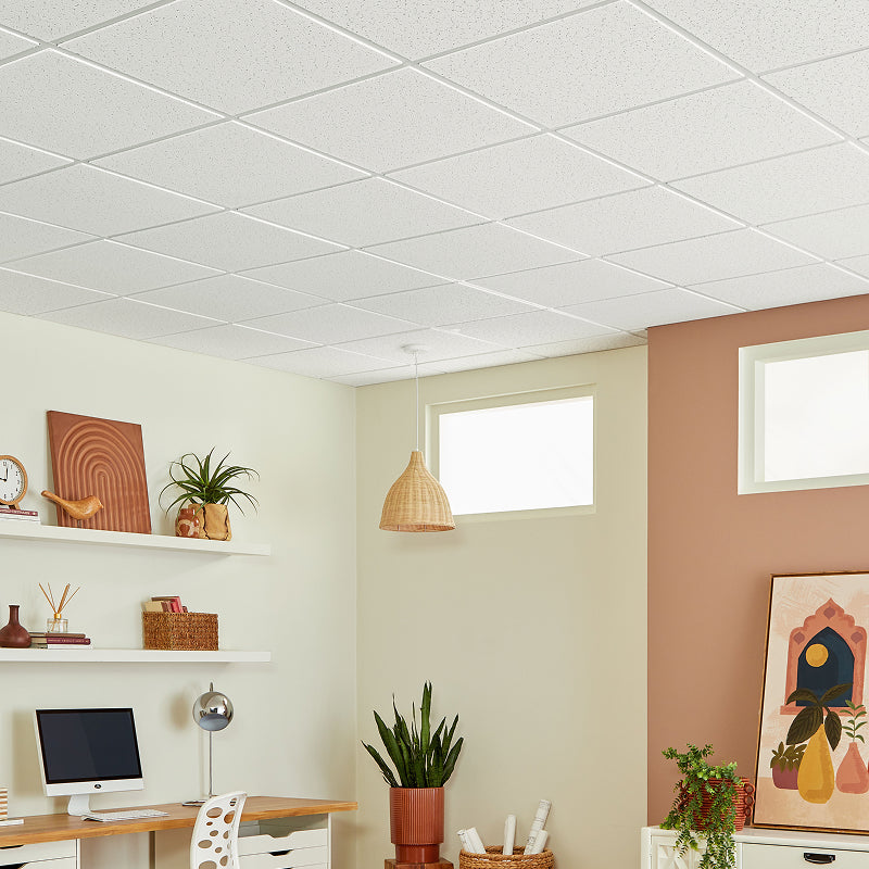 Mineral fiber acoustic panels with a random, non-directional texture for fast installation and clean, classic look. Designed for 15/16 in suspended grid systems to improve sound absorption and conceal plenum spaces in offices, retail, and residential areas.