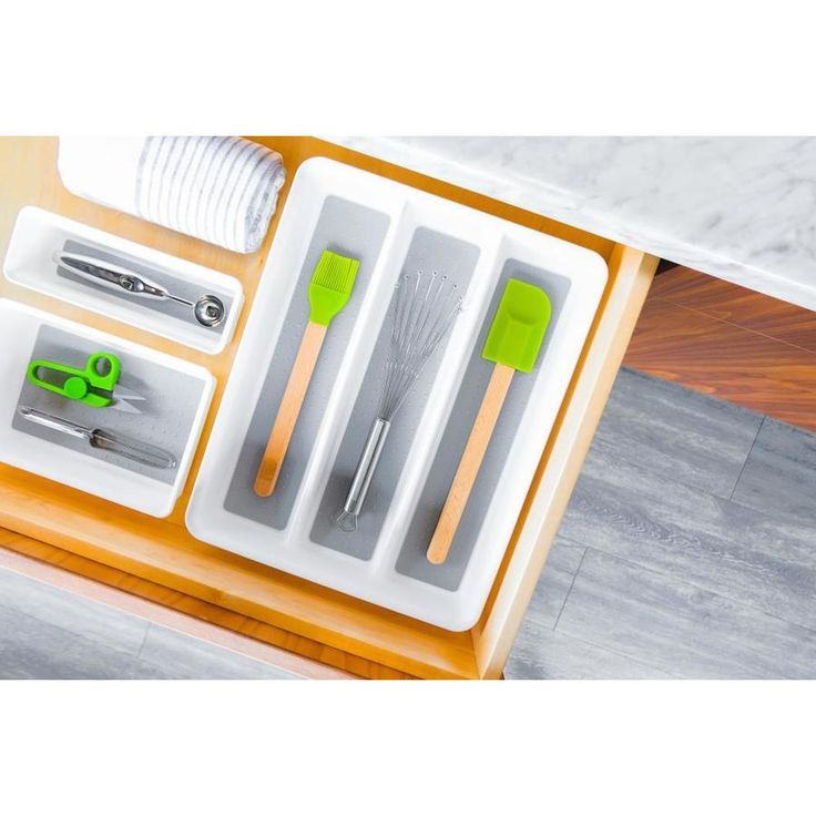 Soft-grip lining and simple design brings function and style to any kitchen drawer