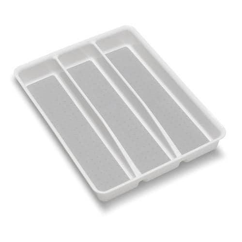 The basic large utensil tray is great for organizing kitchen utensils. It has three compartments for easy organization. Features soft-grip lining and non-slip rubber feet to keep items in their place.