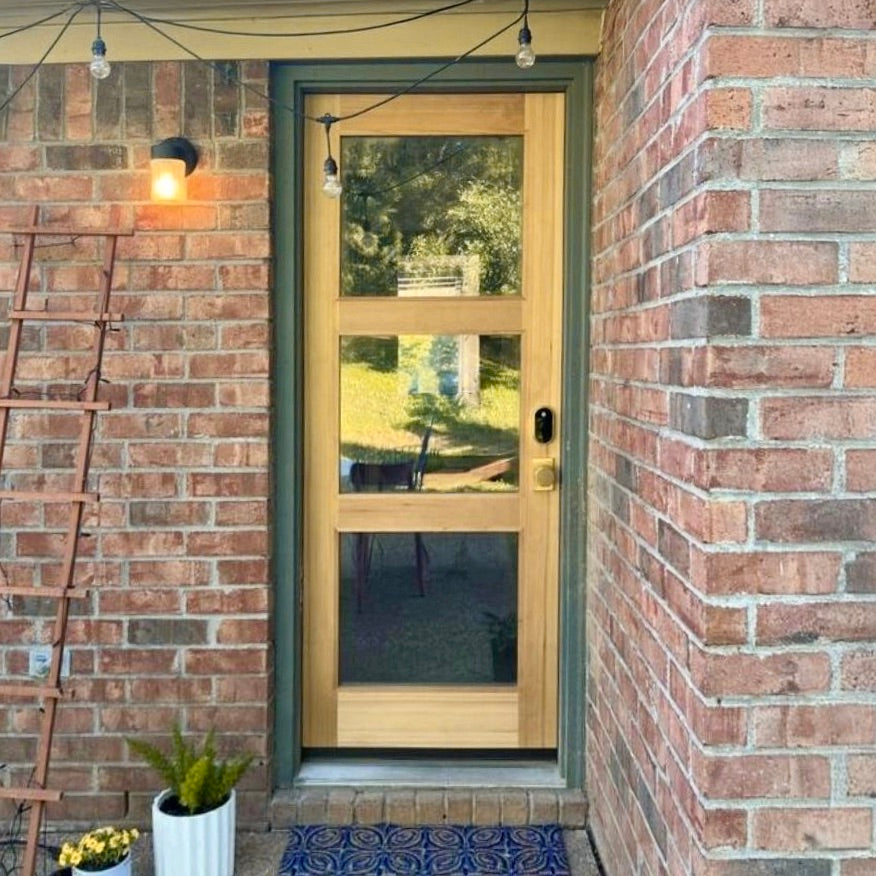 This hemlock beauty introduces a refined, contemporary rhythm to the entry with three expansive panes that invite light to dance across your foyer. The straight grain and smooth surface present a sophisticated canvas for stain or paint, while the clean horizontal rails ground the composition. Pair it with streamlined hardware and a textured doormat to amplify its minimalist allure. It’s an effortless statement piece that elevates everyday living with warmth and polish.