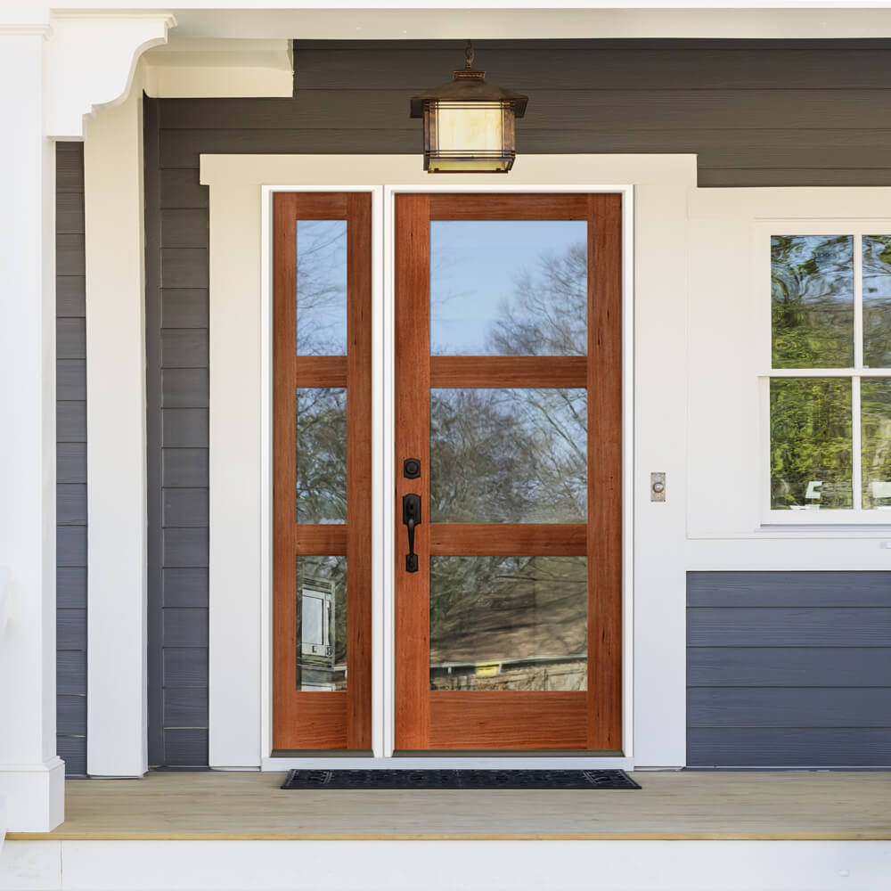 Bring modern warmth and clear, bright light to your entry—choose this Krosswood hemlock 3‑lite door today.