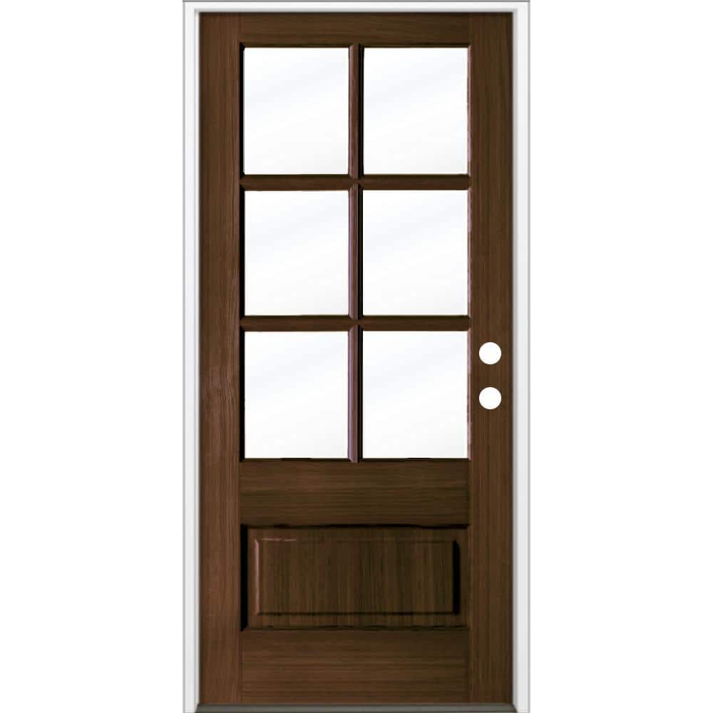 Farmhouse Style: 6-lite rectangle glass layout and 2-panel lower design in a rich black stain