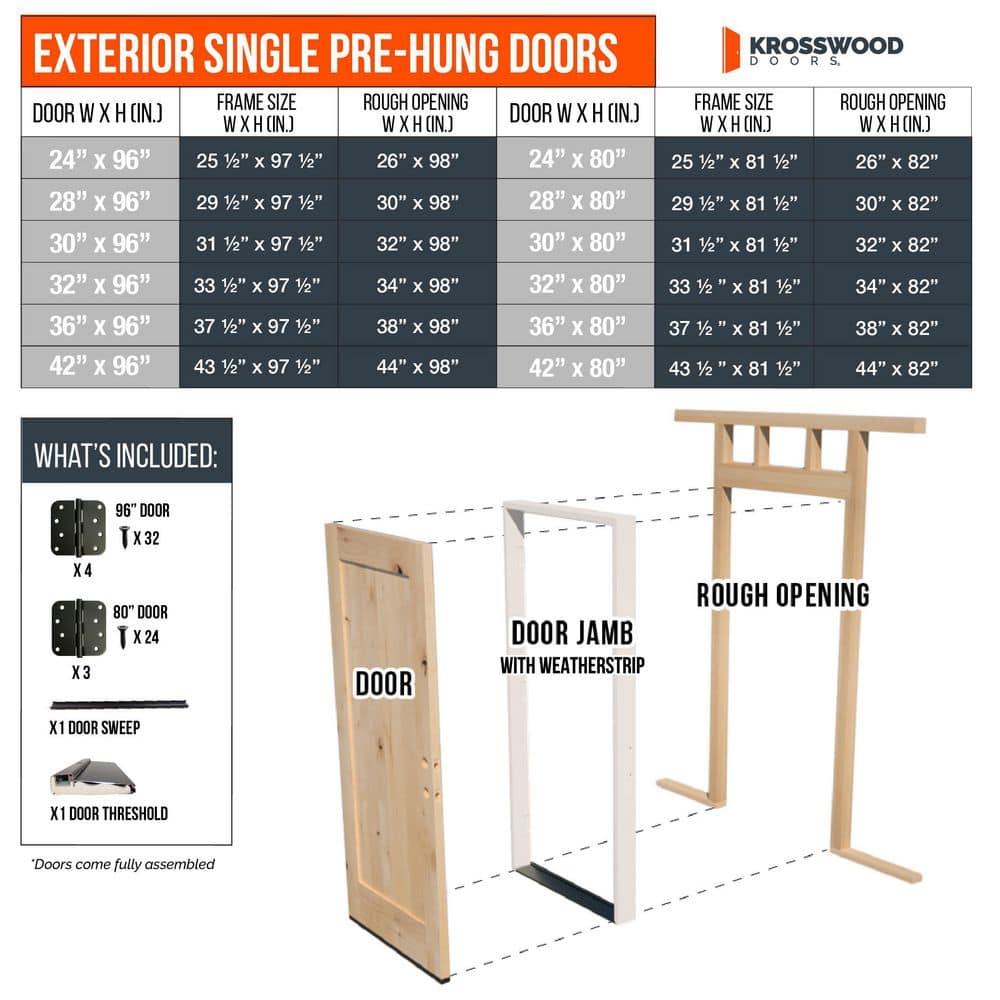Prehung Convenience: Arrives assembled with hinges, weatherstripping, threshold, and double-bored for hardware
