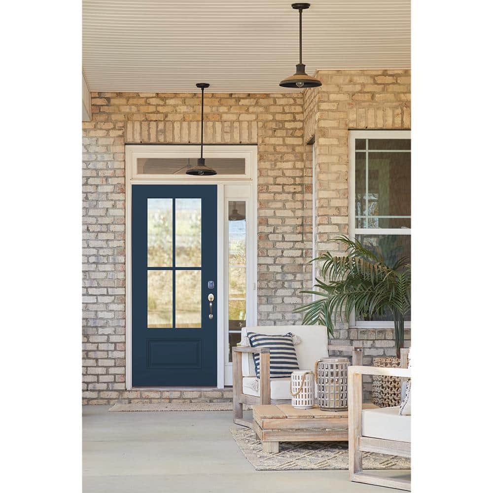 36 in. x 80 in. Left-Hand 4 Lite Clear Glass Revival Blue Painted Fiberglass Prehung Front Door with Brickmould