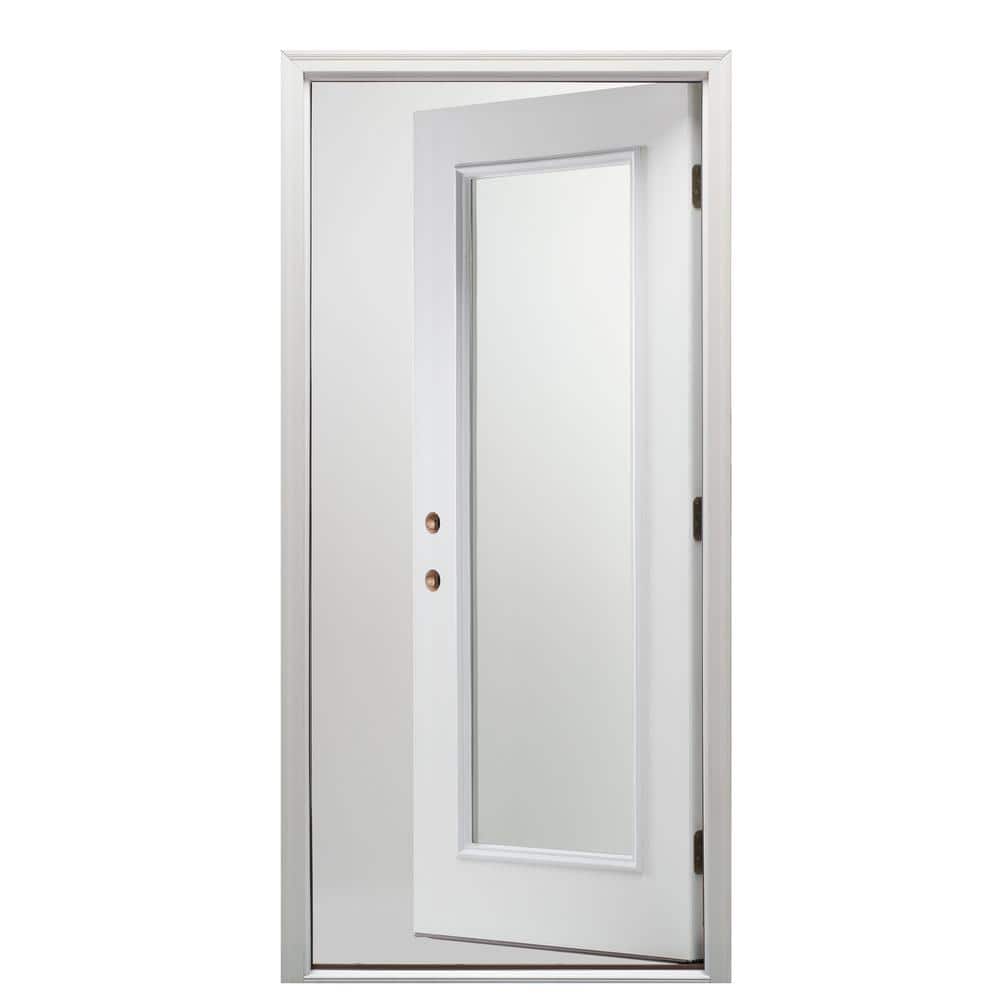 36 in. x 80 in. Right-Hand Inswing Full Lite Clear Classic Primed Fiberglass Smooth Prehung Front Door