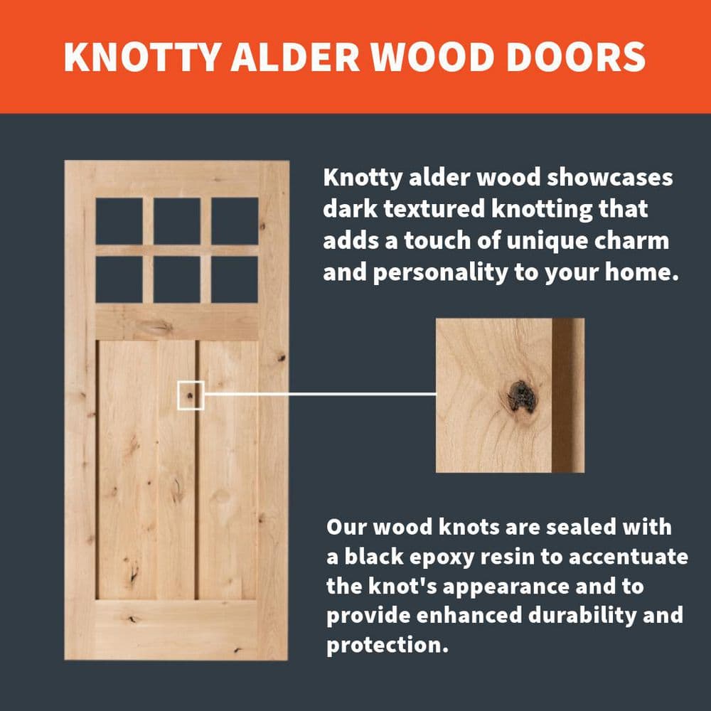 Bring natural warmth and light to your entry with this prehung rustic knotty alder door featuring a clear Low‑E insulated half-lite. Engineered stiles and rails, a 1-3/4 in. solid panel, and weatherstripping deliver durability and energy efficiency, ready to stain or finish to your style.