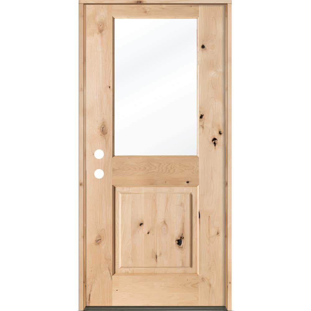 Krosswood Doors 36 in. x 80 in. Rustic Half-Lite Clear Low-E IG Unfinished Knotty Alder Right-Hand Inswing Exterior Prehung Front Door