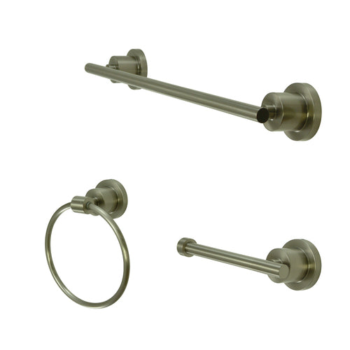 Set includes: 24 in. towel bar, towel ring and toilet paper holder