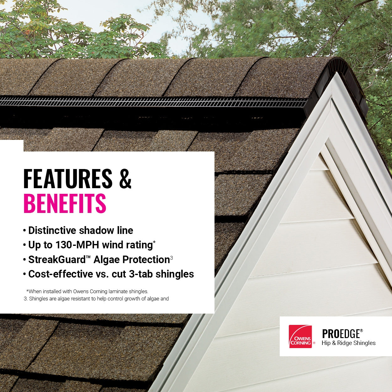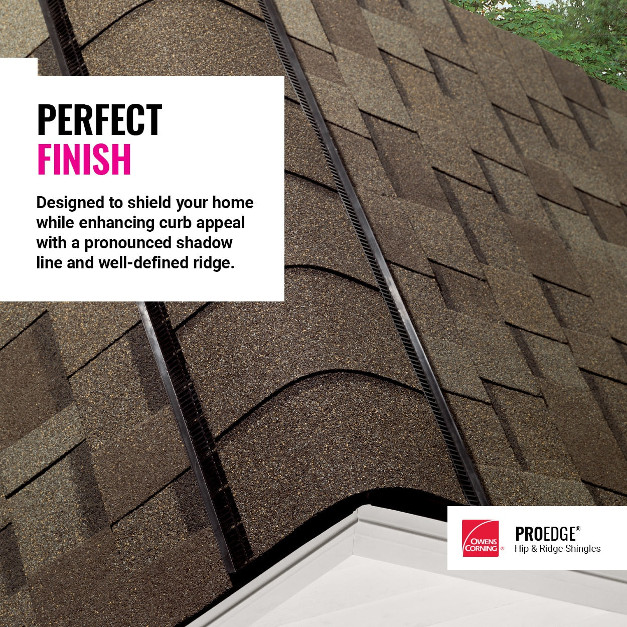 Add a polished, well-defined roofline with Owens Corning ProEdge Hip & Ridge shingles in Summer Harvest. These asphalt shingles feature a distinctive shadow line, algae-resistant protection, and self-sealing design for durable performance and quick installation.