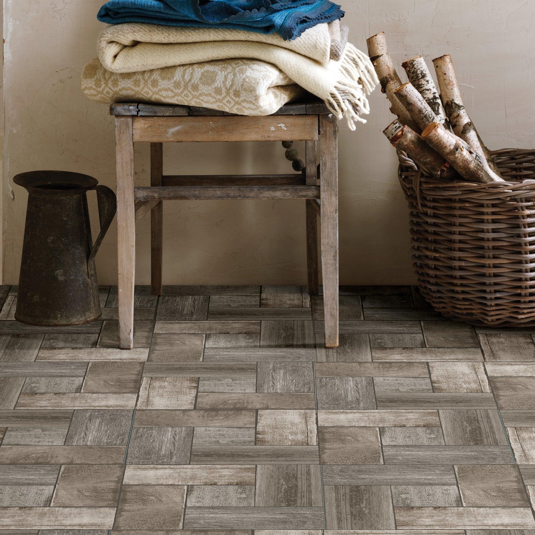 Get the look of a parquet wood floor without the cost! These peel and stick virgin vinyl tiles feature a brown and grey design with realistic wood grain details. FloorPops Northwoods Peel and Stick Floor Tiles contain 10 square pieces on 10 sheets that measure 12 x 12 inches. This product measures 60 inches long, 24 inches wide, and 0.06 inches thick when assembled and weighs 5.5 pounds. FloorPops have a textured low lustre finish and one pack covers 10 square feet.