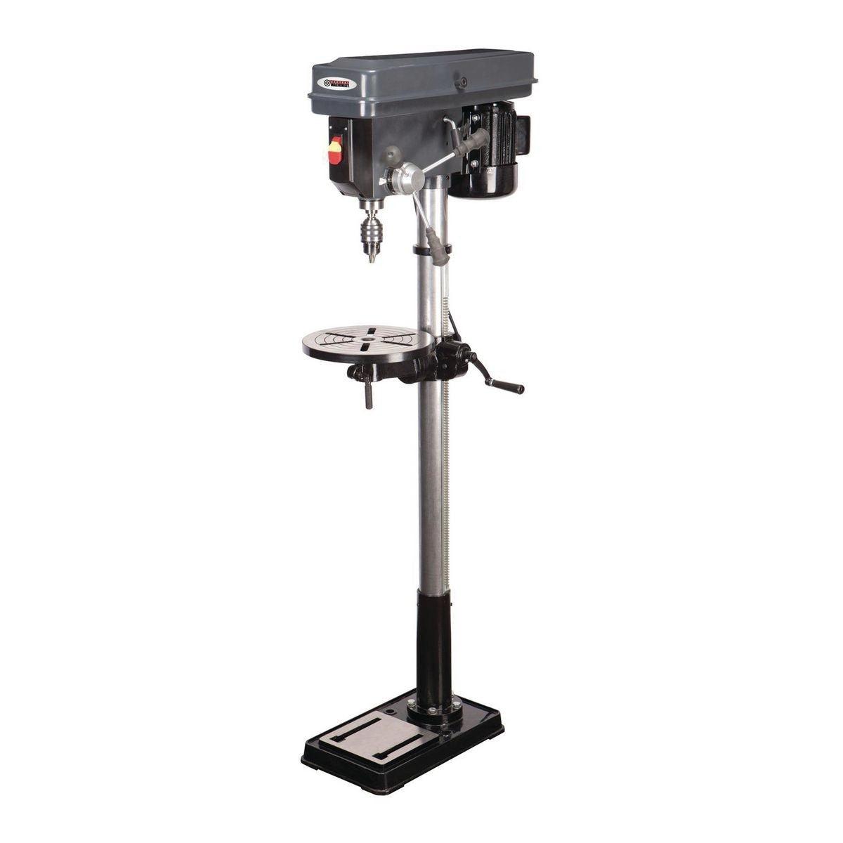 This professional-quality bench drill press has a multi-speed gearbox for working in a wide range of materials. The floor drill press is constructed of cast iron to reduce vibration and features smooth rack-and-pinion movement, an adjustable depth stop with gauge and a solid cast iron table. The table also rotates 360 degrees and can be tilted 45 degrees left or right.