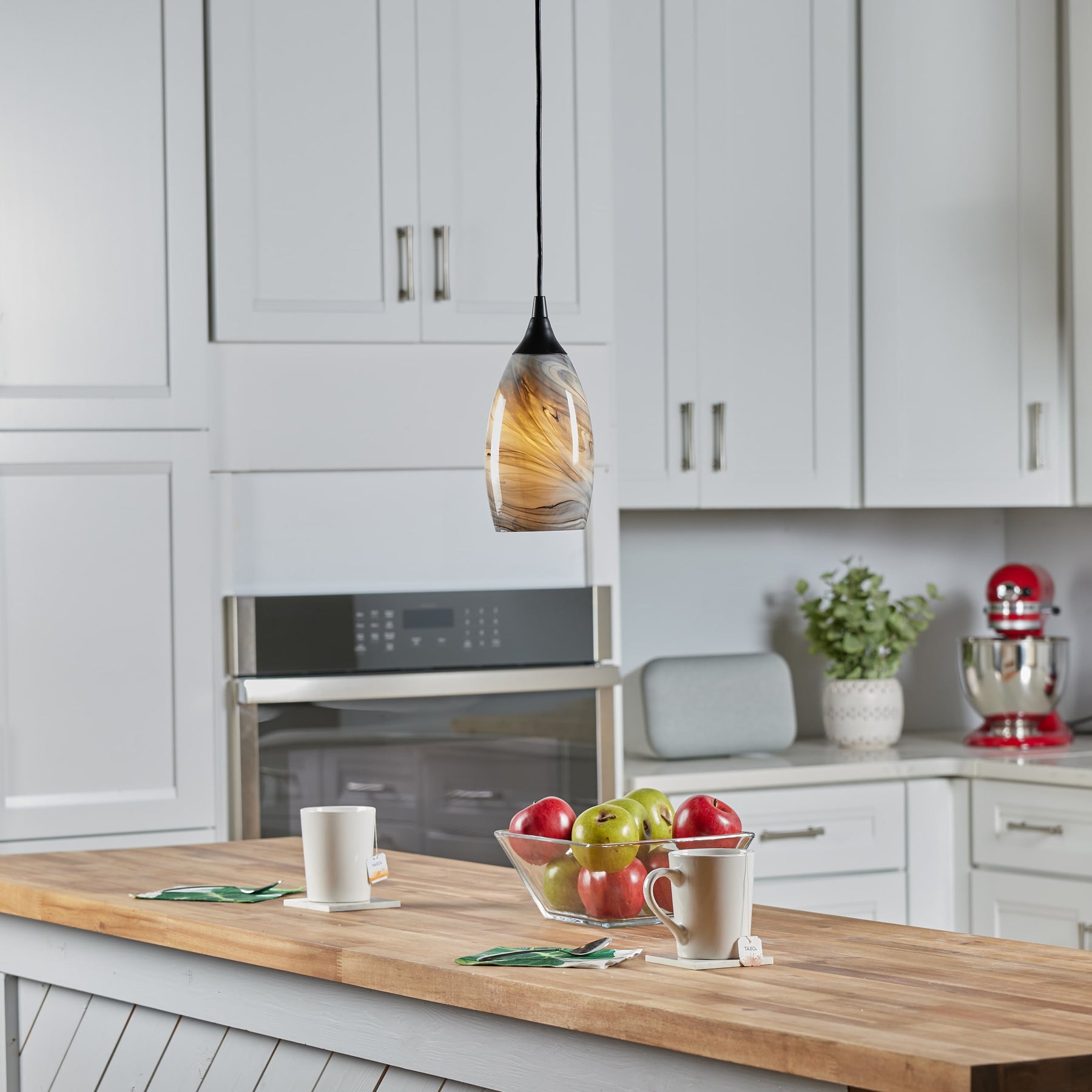 This matte black pendant is a quiet statement—sleek, svelte, and ready to transform your kitchen island into a curated vignette. Its teardrop profile and Mix & Match capability invite you to personalize the mood with a shade that suits your palette. Try a smoky glass for a sultry contrast against crisp cabinetry or a hammered clear glass to celebrate texture. It’s a small luxury with big impact, elevating everyday moments with refined illumination.