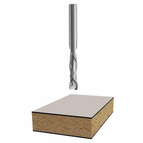 Ideal for general use with difficult-to-route materials Specific bits to route hard plastics, double-sided plywood, and melamine Fast feed rates and optimum edge finish on both sides of laminated material Solid carbide for durability Recommended for CNC use Shipped in vinyl pouch