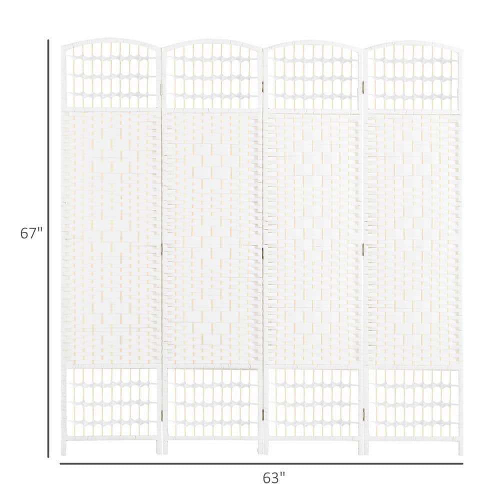 Enhance your space with the Zeus & Ruta 4-Panel Room Divider, a sophisticated room separator crafted from woven paper and bamboo with a stylish bent wood top. This free-standing, folding privacy screen in a clean white finish not only adds privacy but also a touch of elegance to any room decor.
