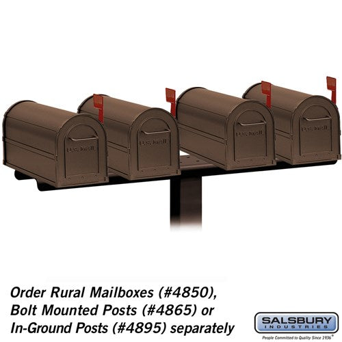 The 4-Wide Mailbox Spreader in Bronze is a durable and stylish solution for mounting multiple rural mailboxes. Made from heavy-duty aluminum with a powder-coated finish, it ensures long-lasting performance and aesthetic appeal.