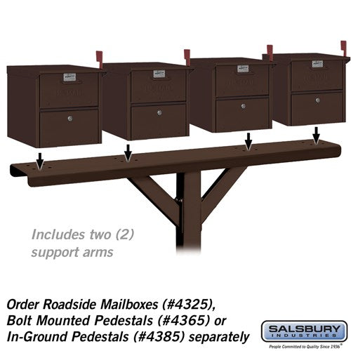 The 4-Wide Mailbox Spreader with Arms is a durable and stylish solution for mounting multiple roadside mailboxes. Made of heavy-duty aluminum with a powder-coated bronze finish, it ensures long-lasting performance and aesthetic appeal.
