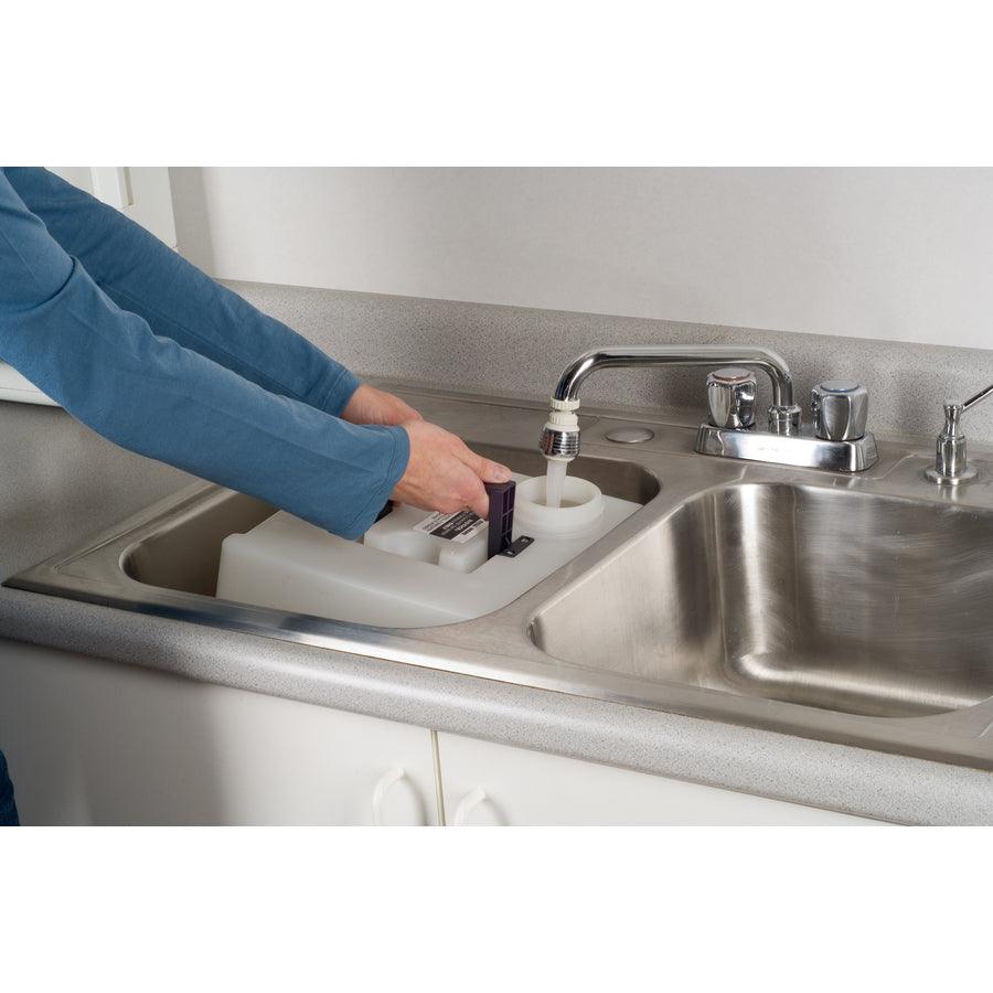 Large-capacity removable tanks for clean and dirty water are easy to fill and empty
