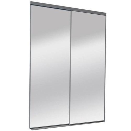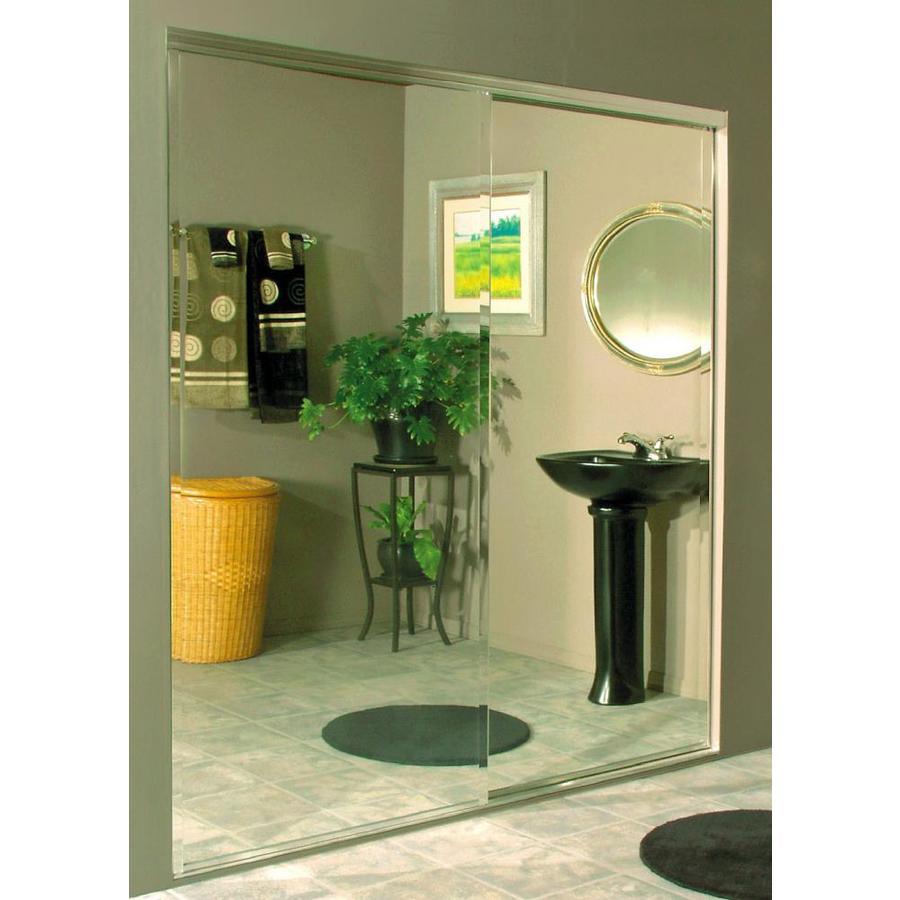 Frameless mirrored bypass door with 1-in bevel, bottom roll
