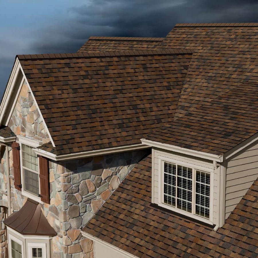 In a deep, teak-toned palette, these architectural shingles bring a tailored rhythm to the roofline, transforming a façade with nuanced shadow play. The laminated profile adds sculptural depth, a standout detail that frames gables and dormers with confident sophistication. Pair with creamy siding and matte black accents for a timeless, modern silhouette. Consider these shingles the finishing touch that signals refined, luxurious living from the very first glance.