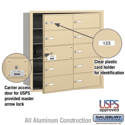 4B+ Horizontal Mailbox with 10 B Doors, Rear Loading, Sandstone Finish